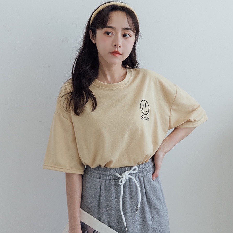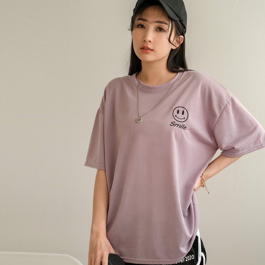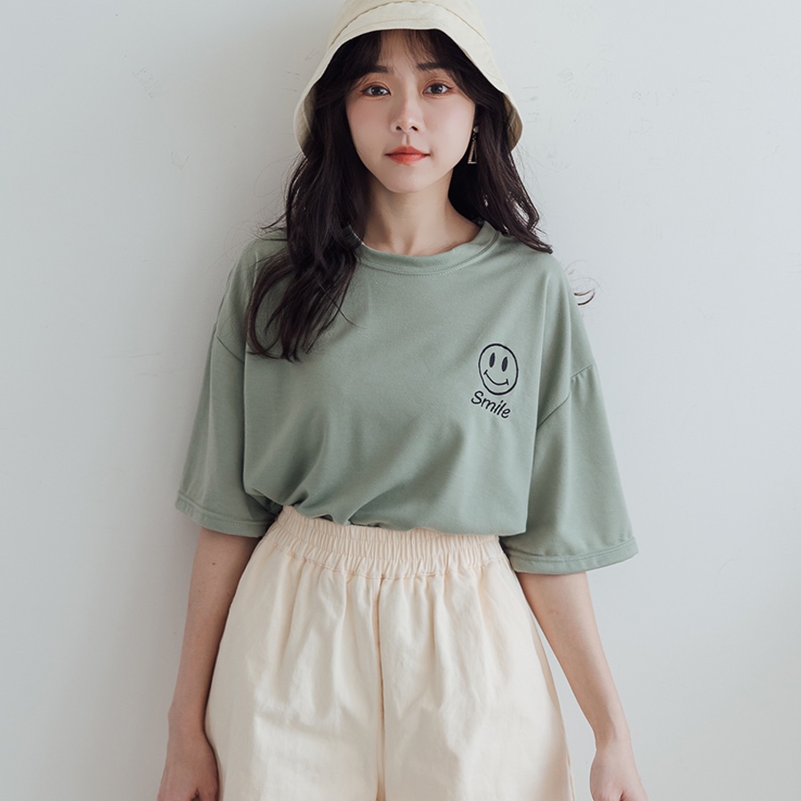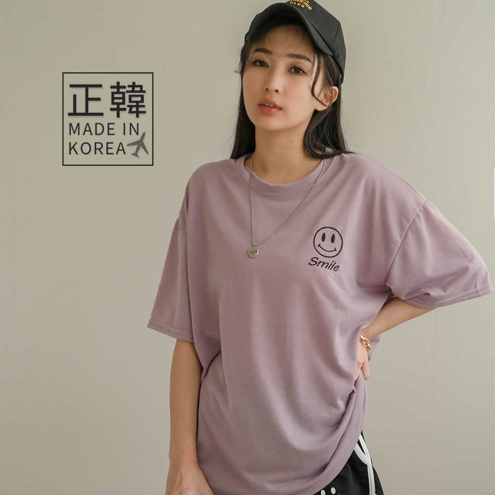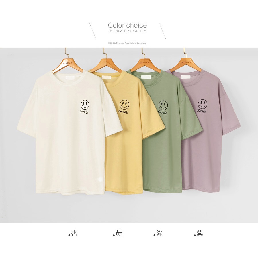 MIUSTAR 正韓.左繡SMILE笑臉短袖棉上衣(共4色)0502 預購【NL4014RE】黃F|綠F|杏F|紫FT-shirtsMIUSTAR