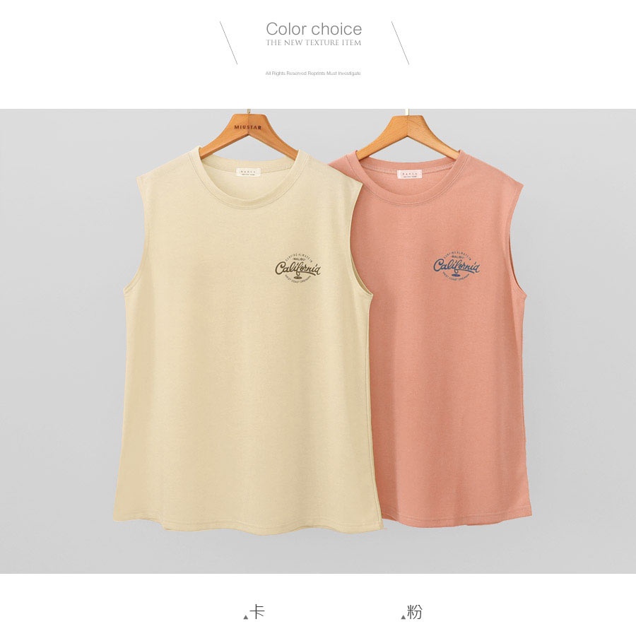MIUSTAR 正韓.英字印花寬版棉背心(共2色)0502 預購【NL4012RE】卡F|粉FT-shirtsMIUSTAR