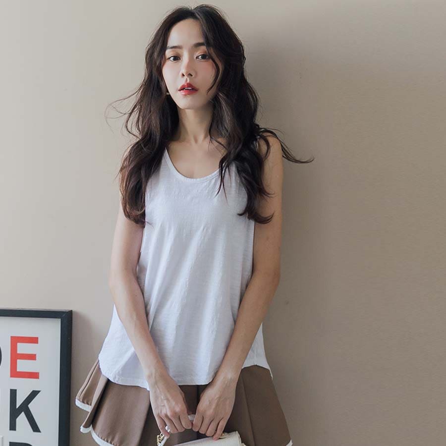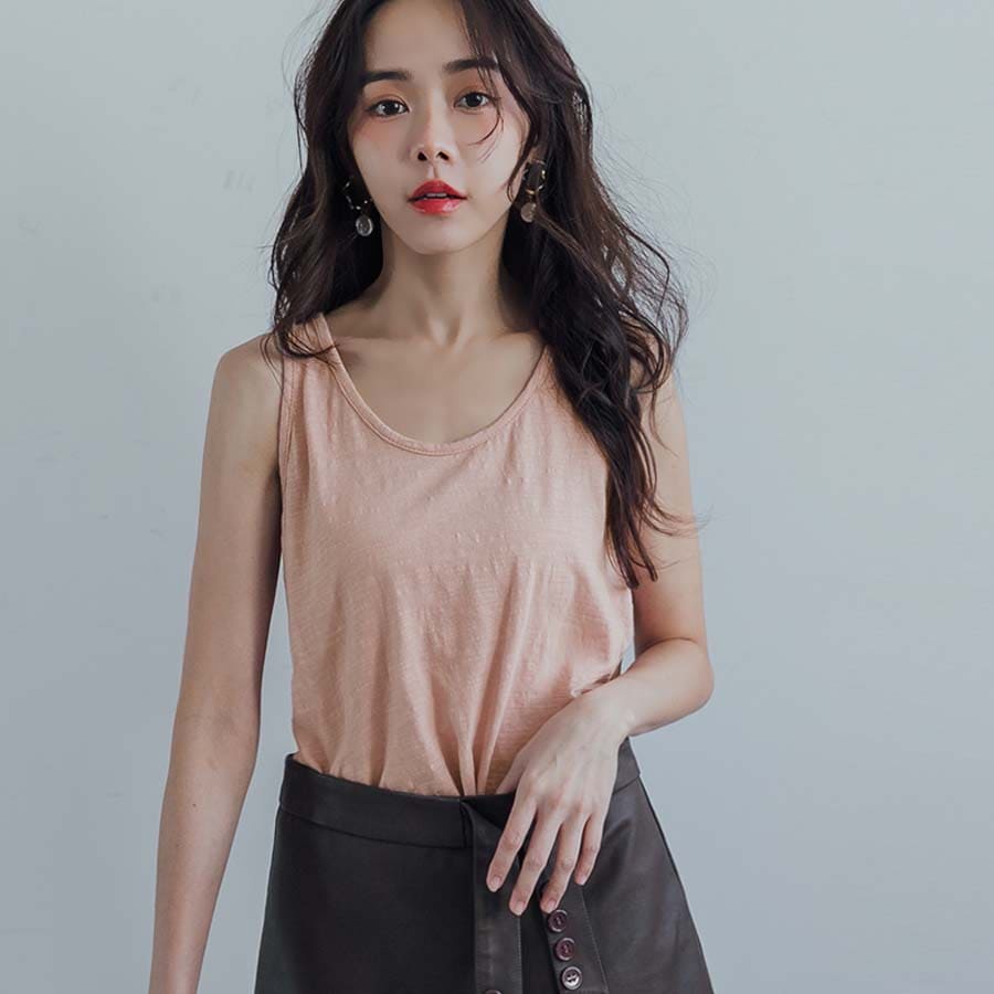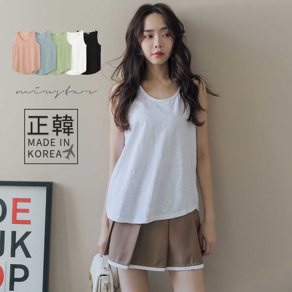 MIUSTAR 正韓.竹節棉無袖上衣(共5色)0822 預購【NL5259RE】白F|粉紅F|黑F|綠F|藍FT-shirtsMIUSTAR