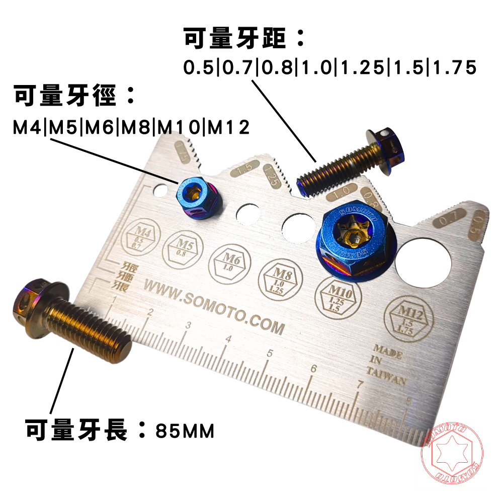 SOMOTO 台灣製造 白鐵螺絲量卡|螺距量尺規格牙距長度測量工具|尺規檢測板適用機車螺絲尺寸比對|改裝維修測量好幫手白鐵螺絲量尺|白鐵螺絲量尺 客製化雷雕,詳情內文&聊聊|【獨家限量】捌號風球OthersMIT台灣製造|SOMOTO螺絲全系列|美督機車油官方唯一授權網路販售|品質透明
