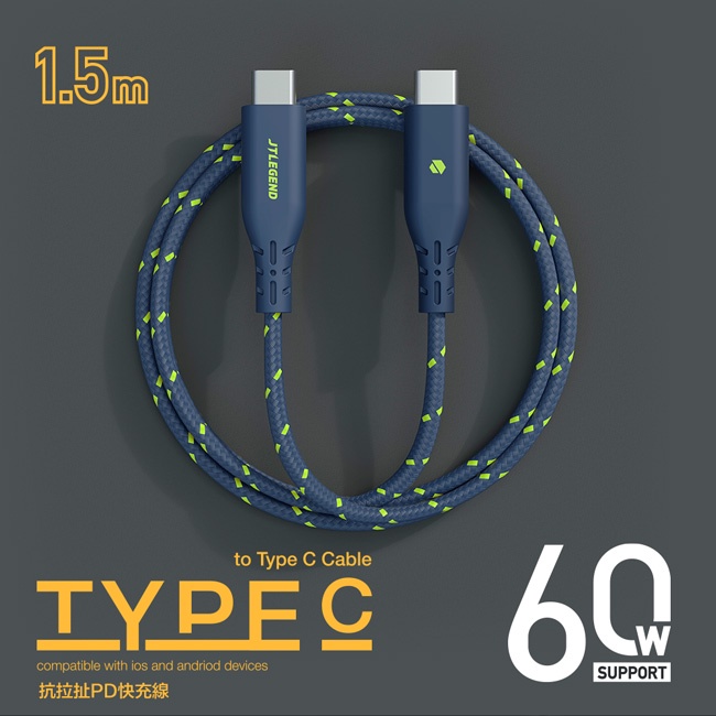 JTLEGEND USB-C to C 60w PD快充線太空黑|星際藍Cables, Chargers & ConvertersSpigen 官方旗艦店