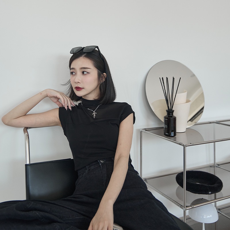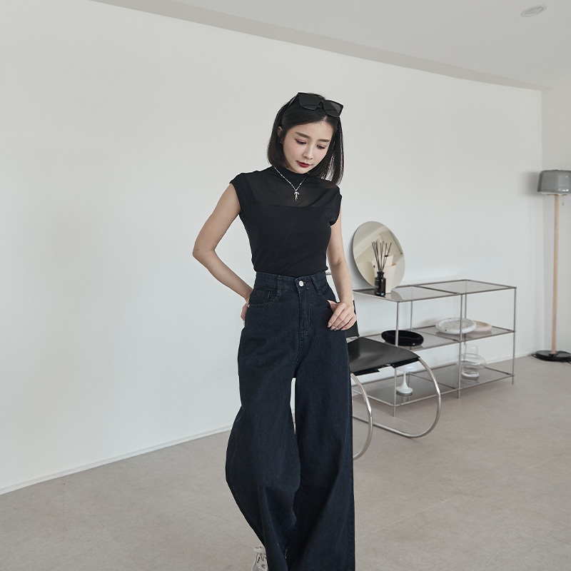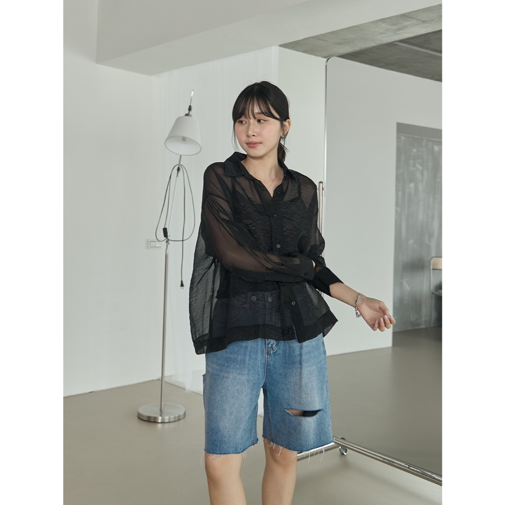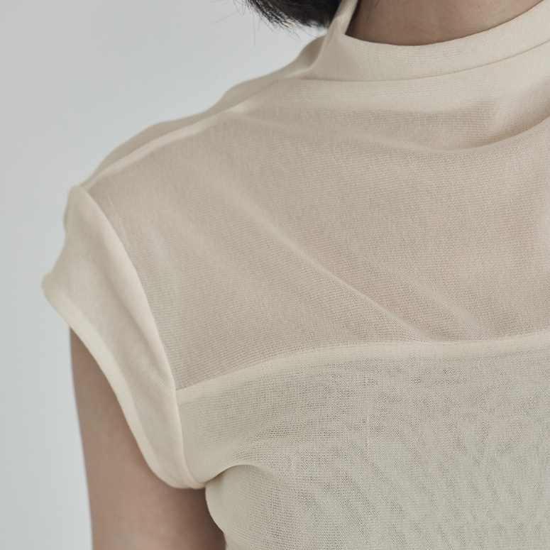 Space Picnic|拼接網紗微透立領上衣-3色【C24091022】