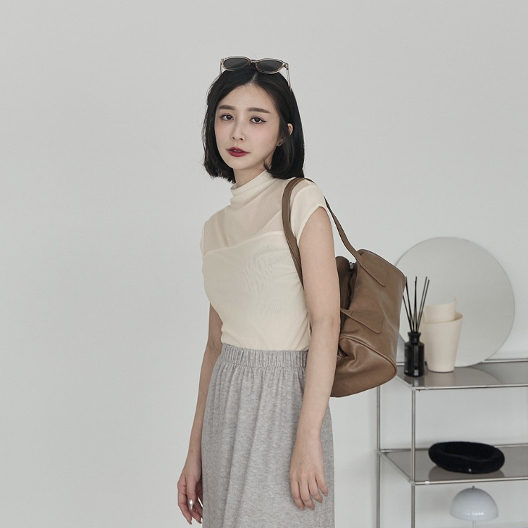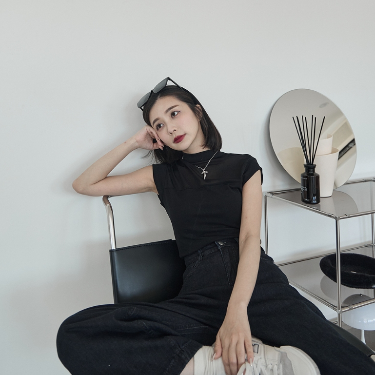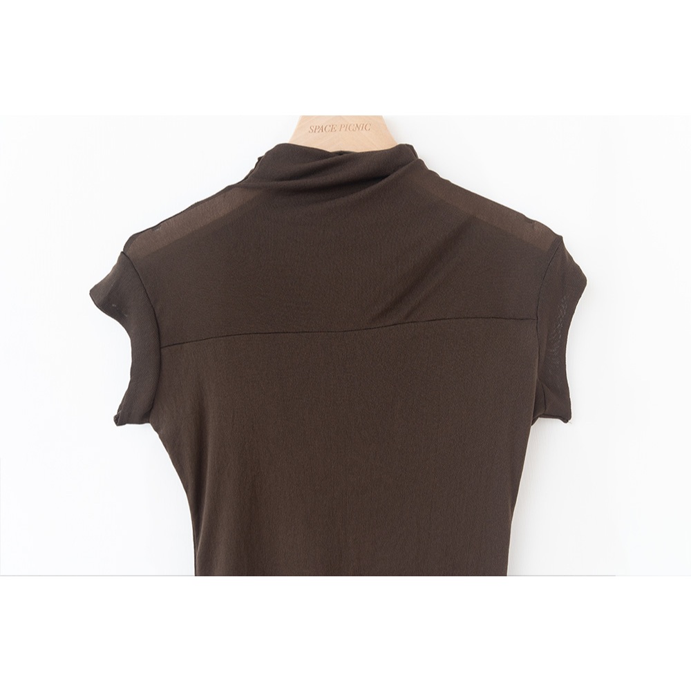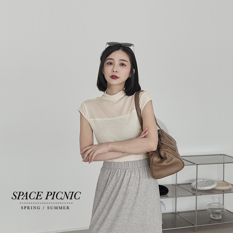 Space Picnic|拼接網紗微透立領上衣-3色【C24091022】黑|咖啡|杏OthersSpace Picnic