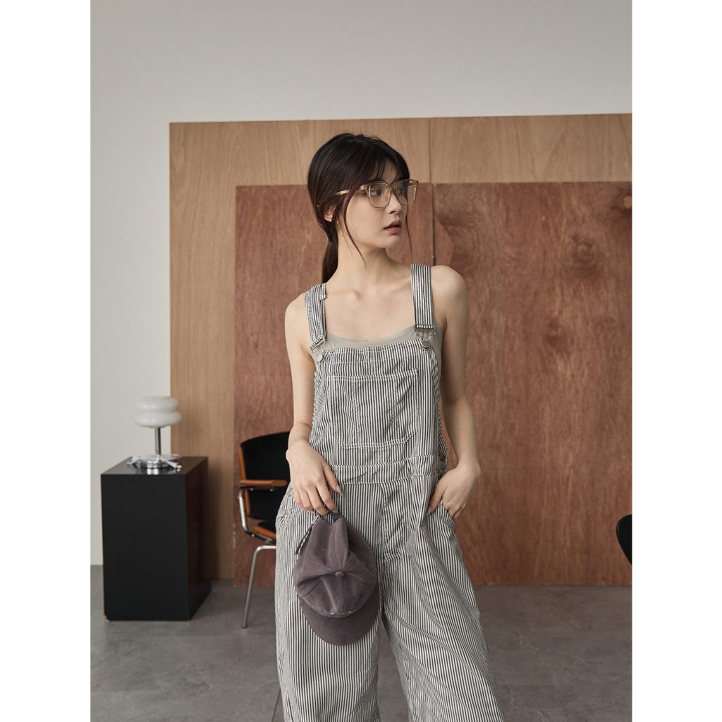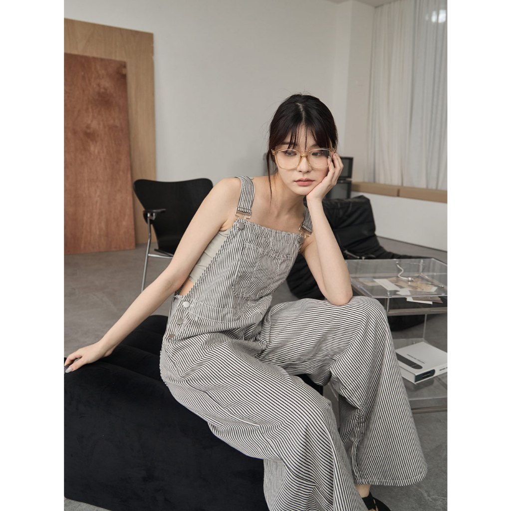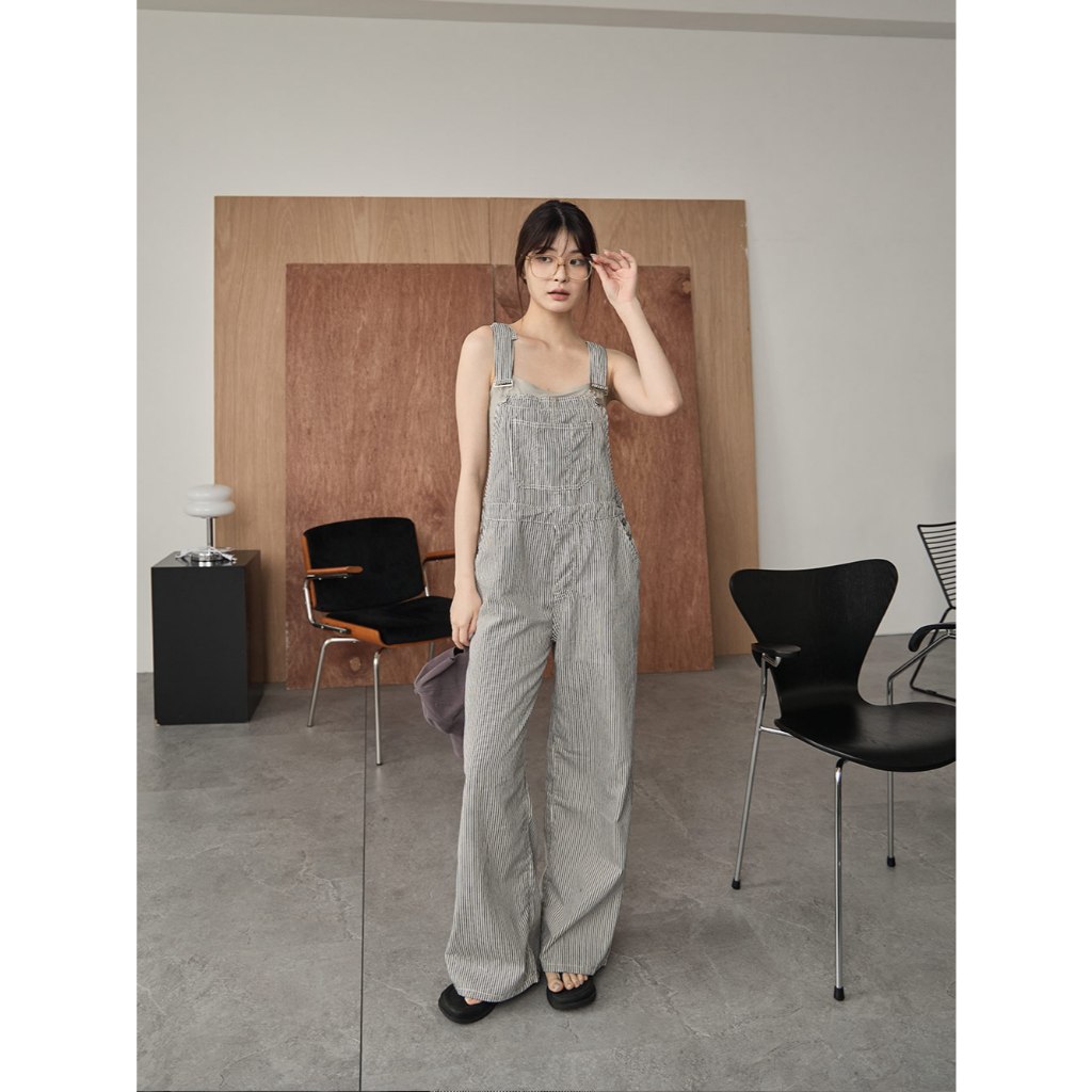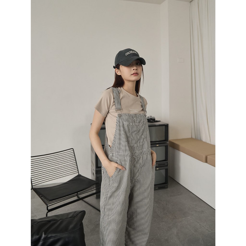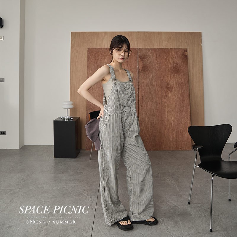 Space Picnic|直條紋大口袋吊帶褲-1色【2506244】白條OverallsSpace Picnic