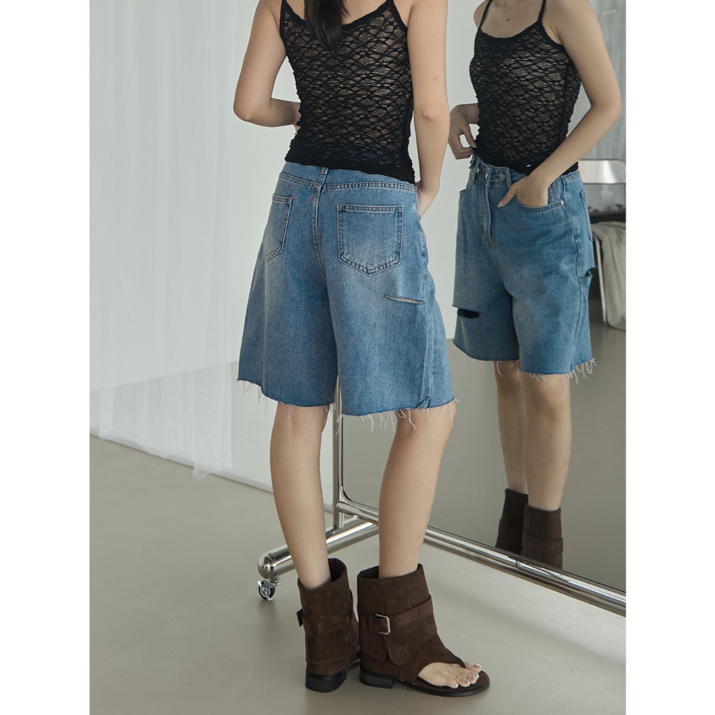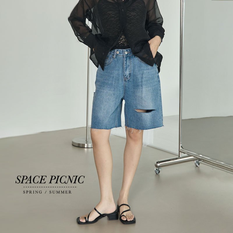 Space Picnic|調節釦五分牛仔褲-1色【2506343】藍,S|藍,M|藍,L|藍,XLShortsSpace Picnic