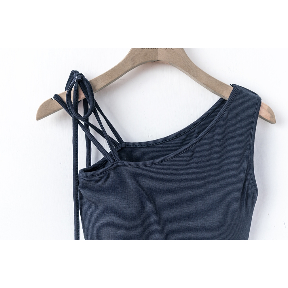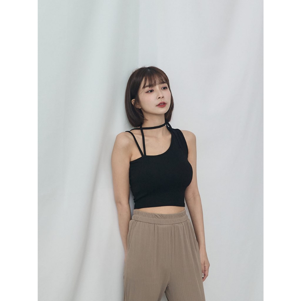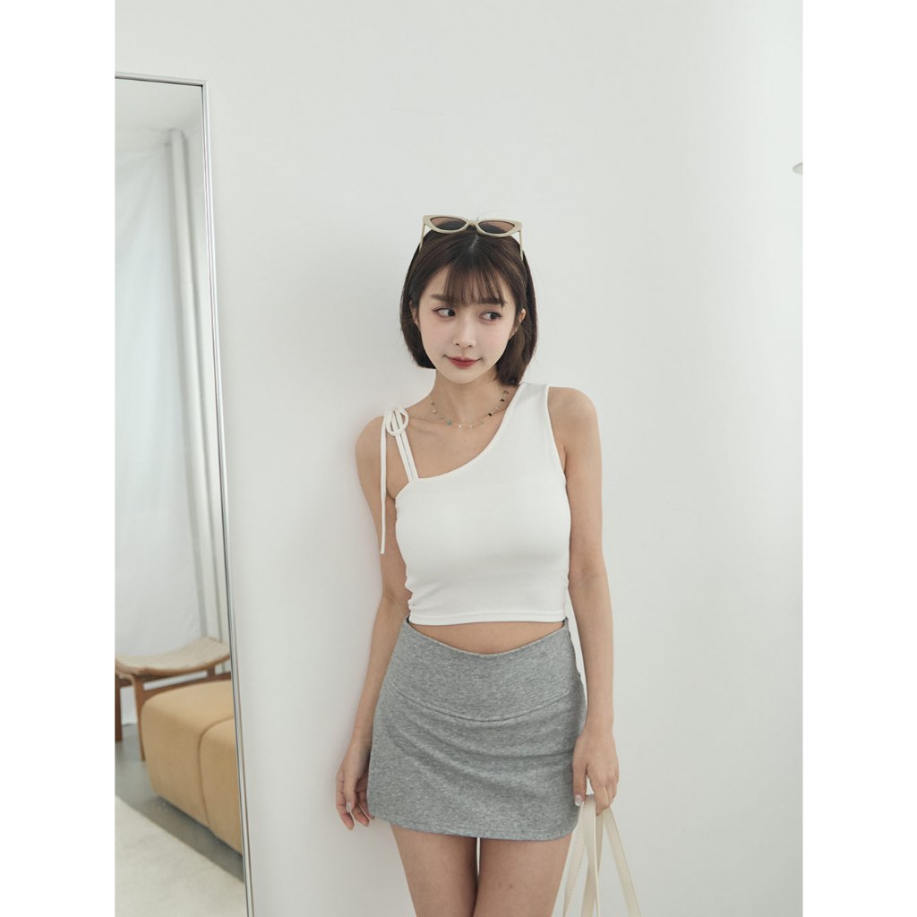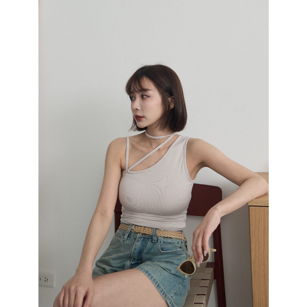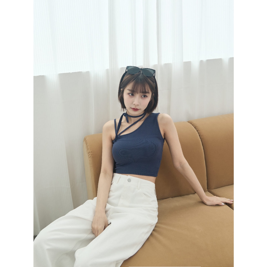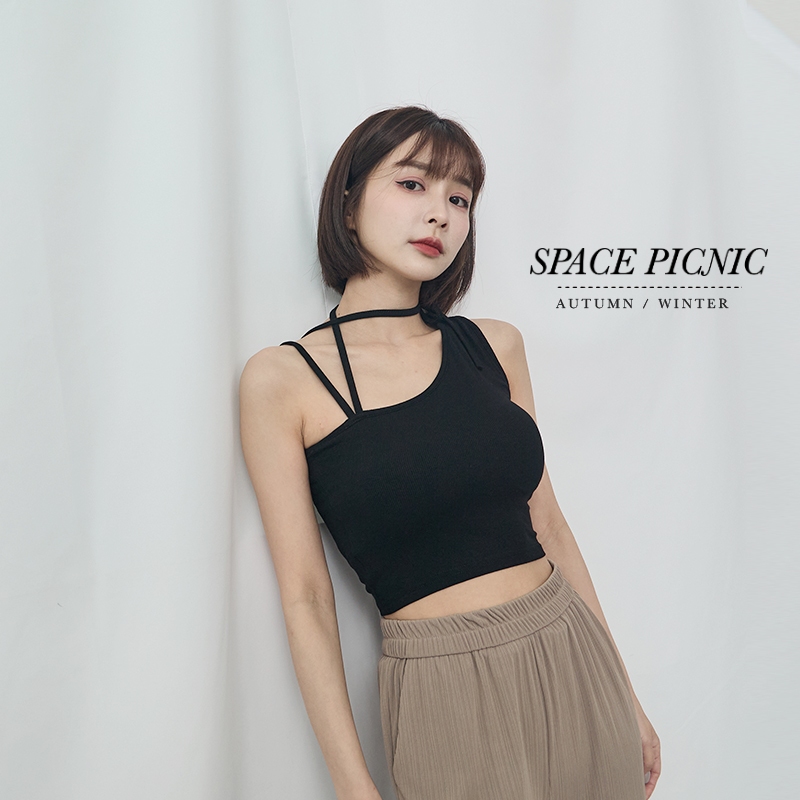 Space Picnic|綁帶短版不對稱胸墊背心-5色【2503336】白|黑|奶灰|深藍|灰杏Tanks & CamisolesSpace Picnic