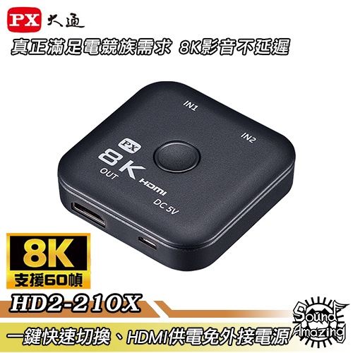 PX大通 HD2-210X 8K HDMI 二進一出切換器 電競專用 一鍵快速切換 免外接電源 SoundAmazingPX大通 HD2-210X 8K HDMI 二進一出切換器 電競專用 一鍵快速切換 免外接電源 SoundAmazingSound Amazing