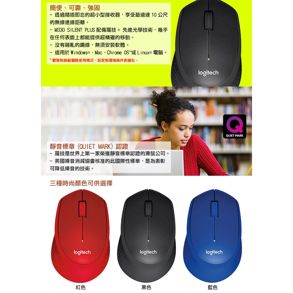 羅技 M331 Silnet Plus無線靜音滑鼠【Sound Amazing】黑色|紅色|藍色MiceSound Amazing