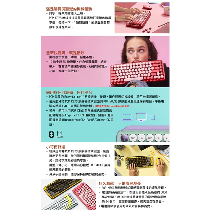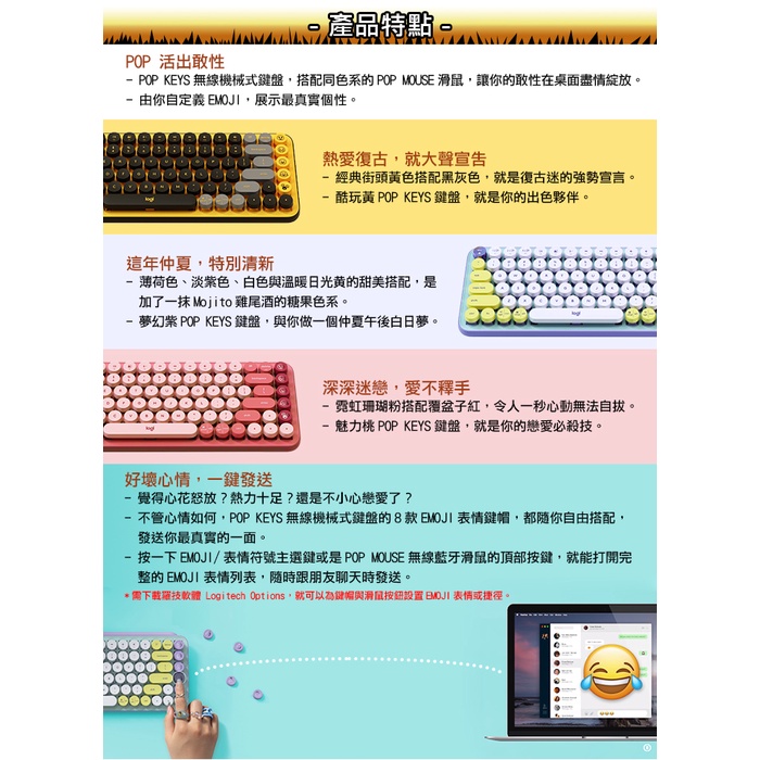 羅技 POP KEYS 無線機械式鍵盤(茶軸) 中文鍵盤 支援BOLT/藍牙 復古圓形鍵帽【Sound Amazing】酷玩黃(贈emoji手托|魅力桃(贈emoji手托KeyboardsSound Amazing