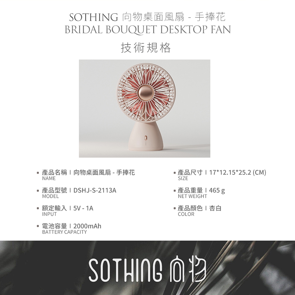 SOTHING向物 桌面風扇 手捧花|現貨 靜音風扇 辦公室風扇 電風扇 小電扇 桌扇 USB風扇 充電電風扇 手持風扇【杏色】向物桌面風扇 手捧花USB & Mobile FansSOTHING向物|品牌旗艦店