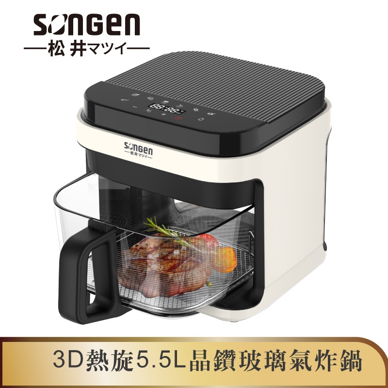 【SONGEN松井】3D熱旋5.5L晶鑽玻璃氣炸鍋/烘烤爐/氣炸烤箱(SG-421GAF)白|黑Air FryersSONGEN松井 官方旗艦店|日本人氣家電品牌