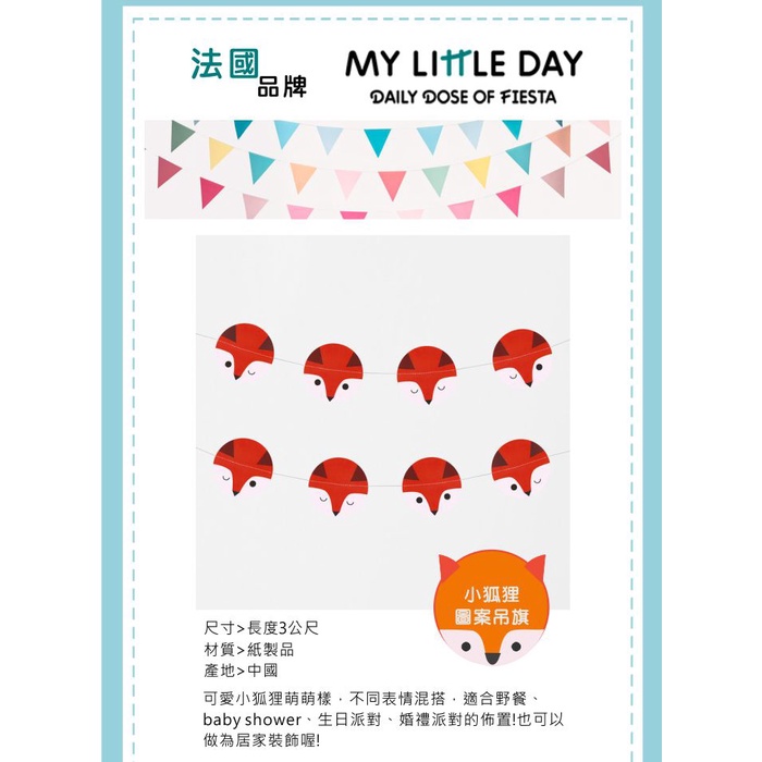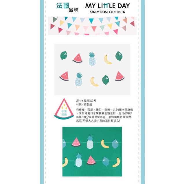 法國My Little Day 可愛圖案吊旗(派對用品)(Songbaby)水果吊旗|小狐狸吊旗|熱帶花朵吊旗|雲朵吊旗|小動物吊旗Wooden ClipsSongBaby 親子生活美學館