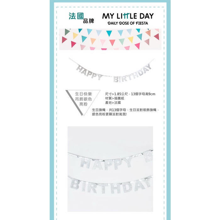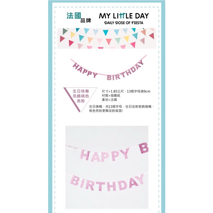 法國My Little Day 生日快樂吊飾(派對用品)(Songbaby)銀色亮粉|桃色亮粉Wooden ClipsSongBaby 親子生活美學館