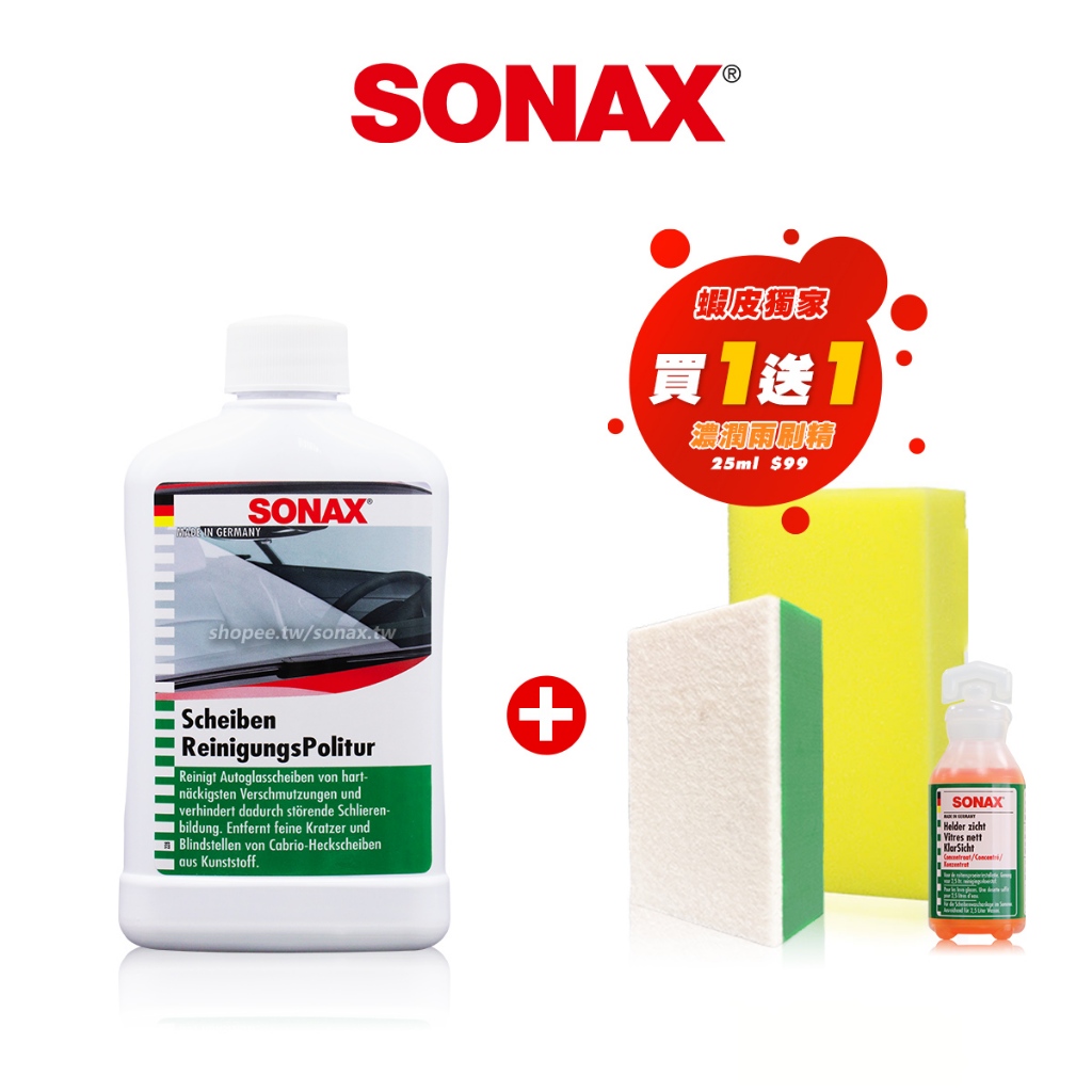 SONAX 深層油膜去除膏 除油墨 重垢油汙清潔 擋風玻璃清潔 贈工具 德國進口1入 加贈 極潤雨刷精 25ml|2入優惠組 加贈 極潤雨刷精*2|直播優惠下單區|限時優惠|限時特賣|加價購 – 單瓶Glass Care & Water RepellentsSONAX 歐洲第一汽車鍍膜 中性洗車藥劑 棕櫚蠟 洗車精 汽車美容 台灣總代理