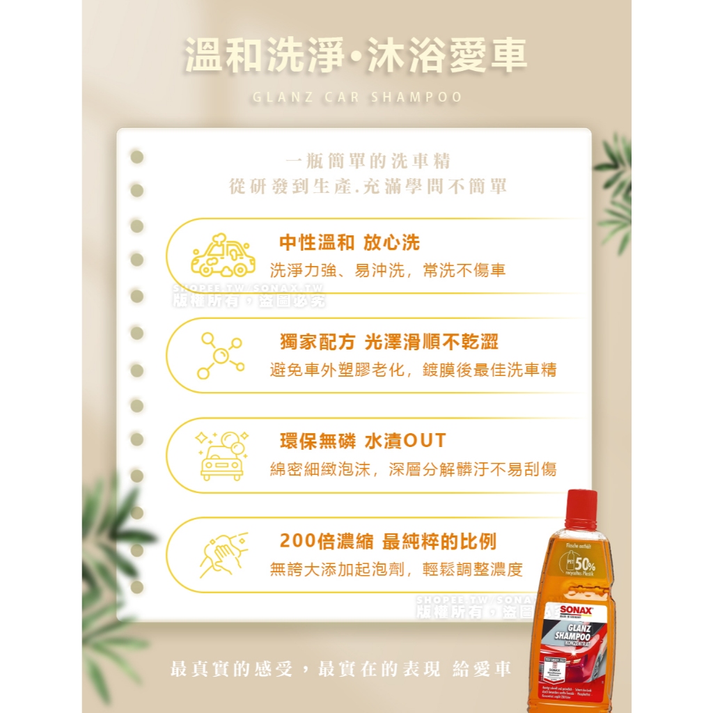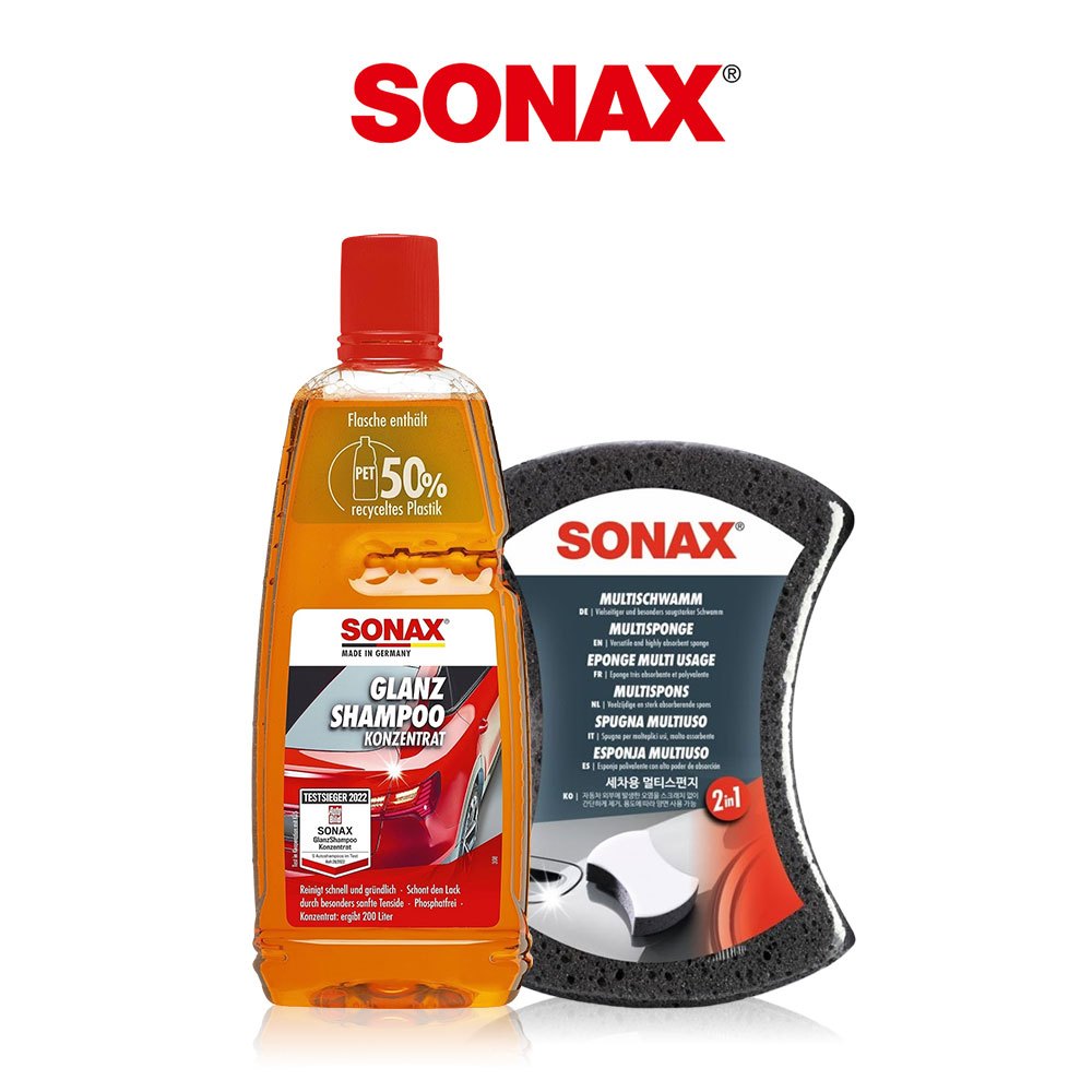 SONAX 光滑洗車精 1L + 雙效洗車海綿 中性無磷新配方 不傷烤漆 不傷鍍膜層 鍍膜車可用 清潔效果強 德國原裝光滑洗車精+雙效洗車海綿|直播優惠下單區|光滑洗車精2入+雙效洗車海綿Wash & WaxesSONAX 歐洲第一汽車鍍膜 中性洗車藥劑 棕櫚蠟 洗車精 汽車美容 台灣總代理