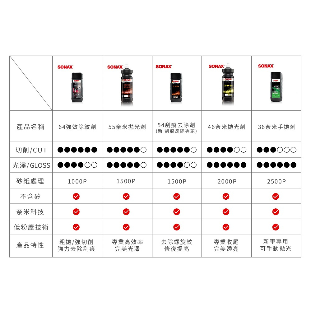 SONAX 54刮痕修護劑 贈擦拭布 刮痕修護 不含矽 溫和研磨 拋光 手動拋 真切削 非蓋紋 專業拋光劑