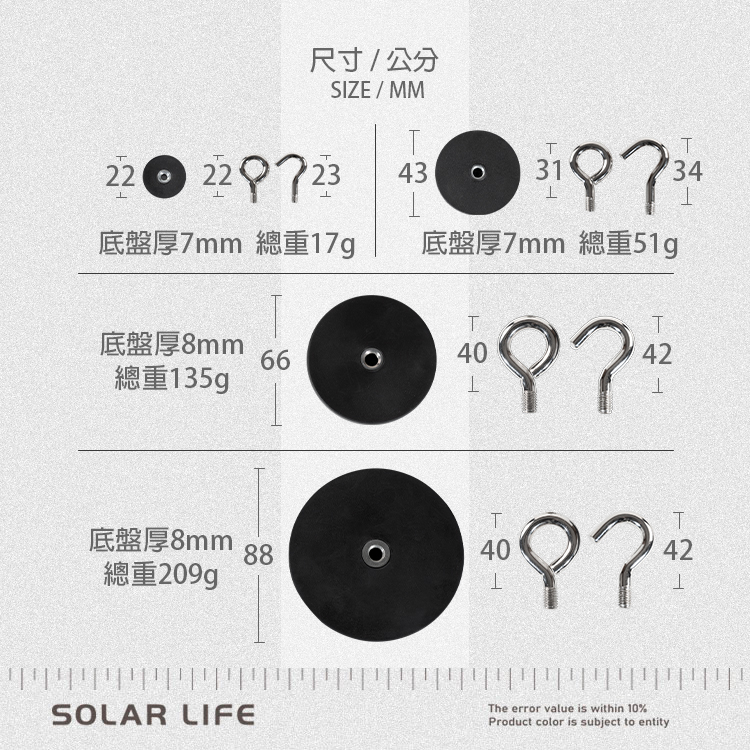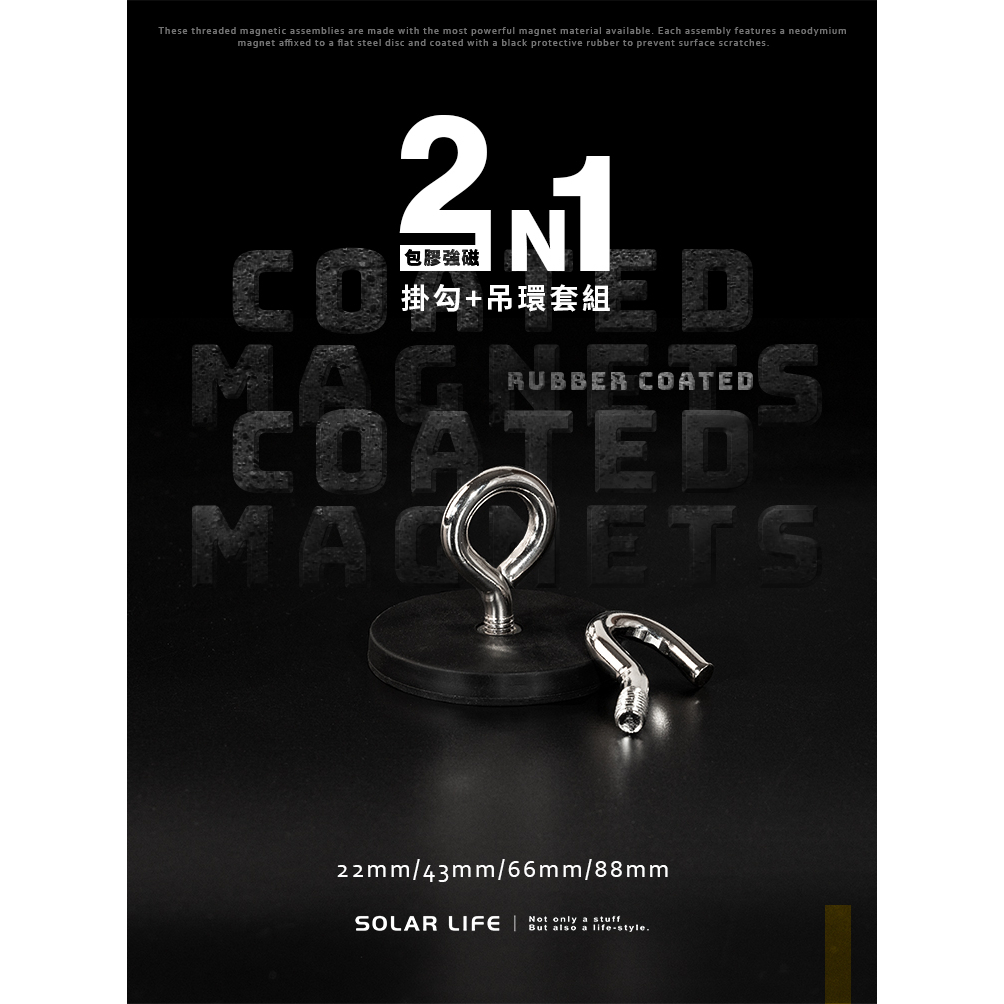 Solarlife 索樂生活 防刮包膠強磁掛勾+吊環套組 2in1 強力磁鐵 露營車用 強磁防刮 車宿磁鐵 吸鐵磁鐵吸盤88mm|22mm|43mm|66mmCamping & HikingSolar Life 索樂生活 | Keith鎧斯鈦台灣總代理