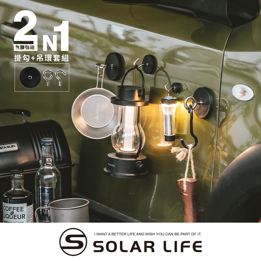 Solarlife 索樂生活 防刮包膠強磁掛勾+吊環套組 2in1 強力磁鐵 露營車用 強磁防刮 車宿磁鐵 吸鐵磁鐵吸盤