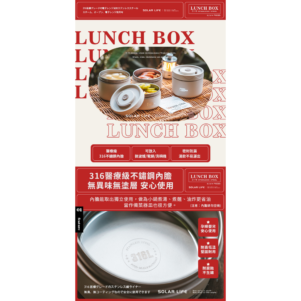 Solar Life 索樂生活 醫療級316不鏽鋼可微波便當盒贈保溫提袋 露營 野餐 便當保鮮盒 圓形保鮮碗 上班族飯盒2盒套組 550ml+420ml|4盒套組(550ml+420ml)x2|3盒套組 550ml+420mlx2Camping & HikingSolar Life 索樂生活 | Keith鎧斯鈦台灣總代理