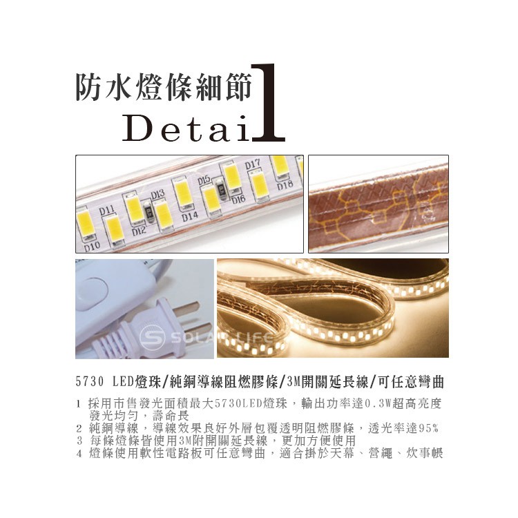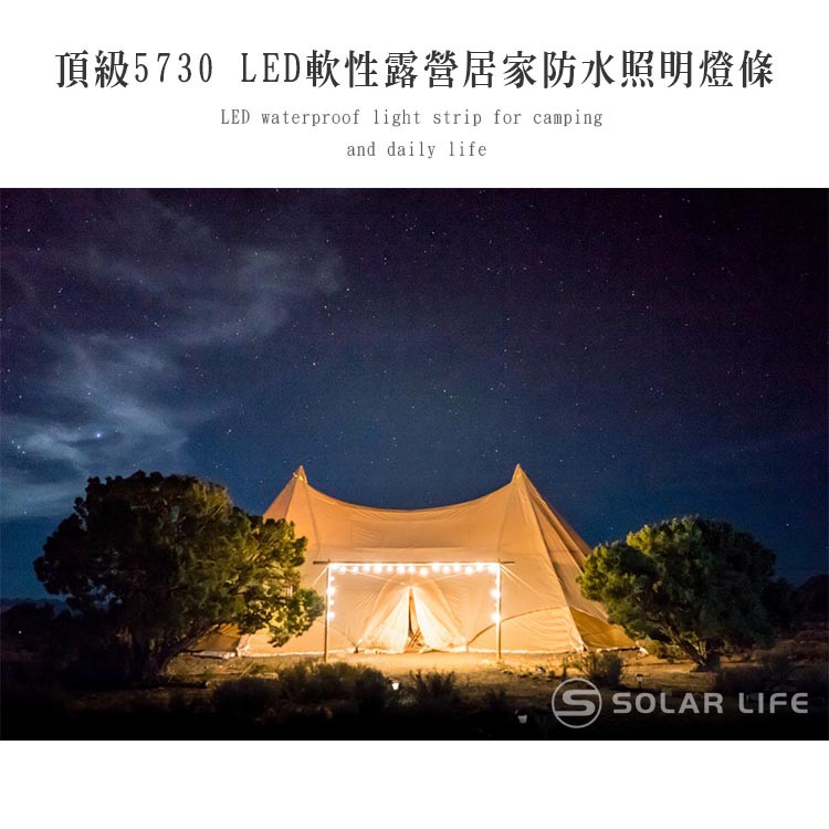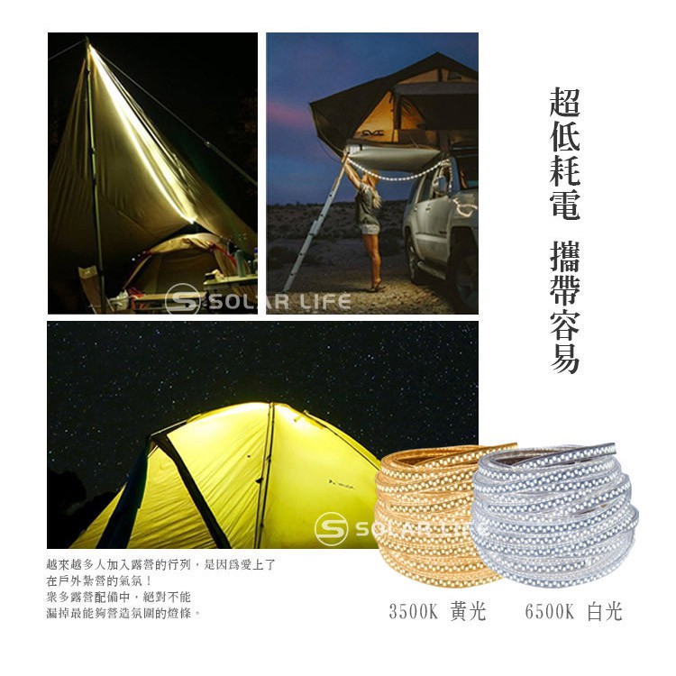 索樂生活 頂級5730 LED軟性露營居家防水照明燈條5M 節能110V串燈帳篷露營LED燈條軟性黃光白光防水燈條戶外白光|黃光Camping & HikingSolar Life 索樂生活 | Keith鎧斯鈦台灣總代理