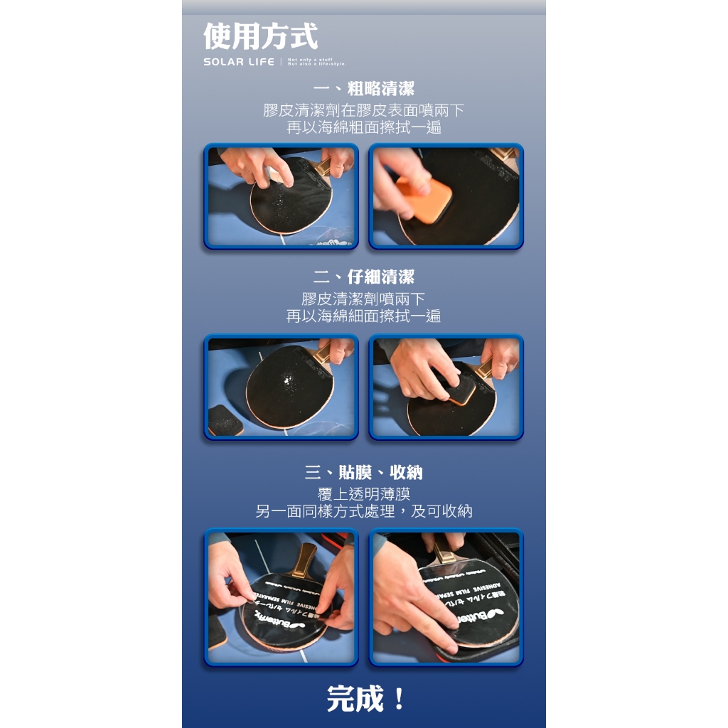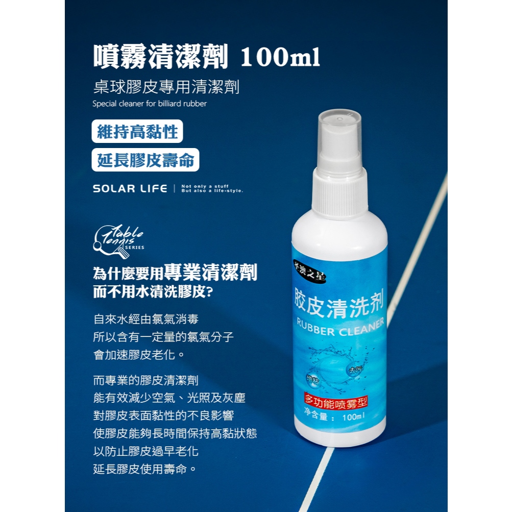 Solar Life 索樂生活 桌球拍清潔保養組合 增黏清潔劑/雙面海綿/保濕貼膜 增黏益壽 膠皮清潔液 兵乓球靜電貼清潔劑100ml|清潔海綿|透明貼膜2入Table TennisSolar Life 索樂生活 | Keith鎧斯鈦台灣總代理