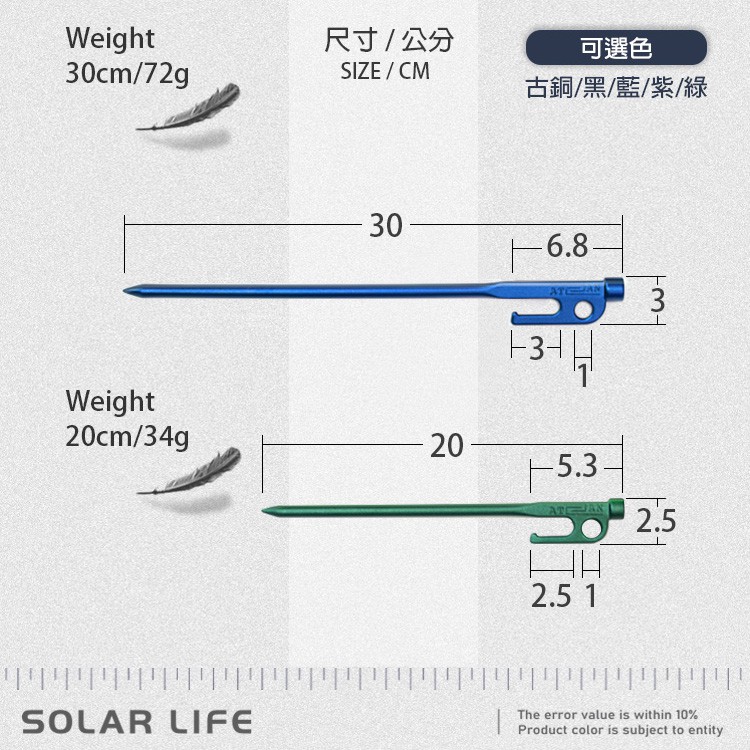 A.T.A.N. 艾登釘 超輕量航太金屬高強度鍛造鋁製營釘 野營露營釘 天幕營釘 露營地釘 輕量帳篷釘 鍛造鋁製營釘古銅色,30cm|紫色,20cm|紫色,30cm|藍色,20cm|藍色,30cm|古銅色,20cm|黑色,30cm|黑色,20cm|綠色,20cm|綠色,30cmCamping & HikingSolar Life 索樂生活 | Keith鎧斯鈦台灣總代理