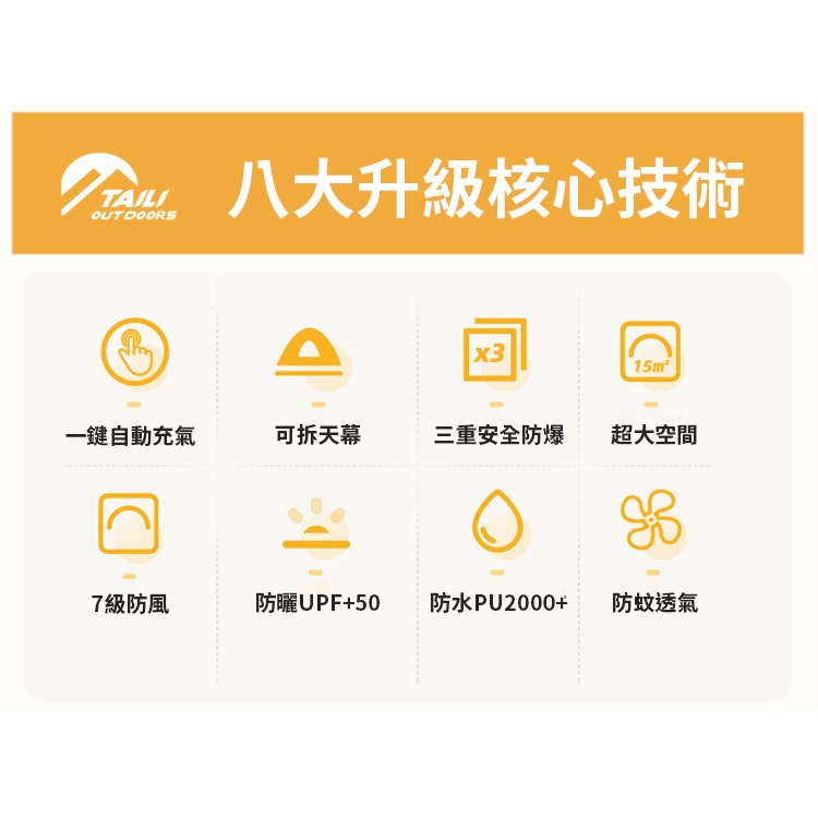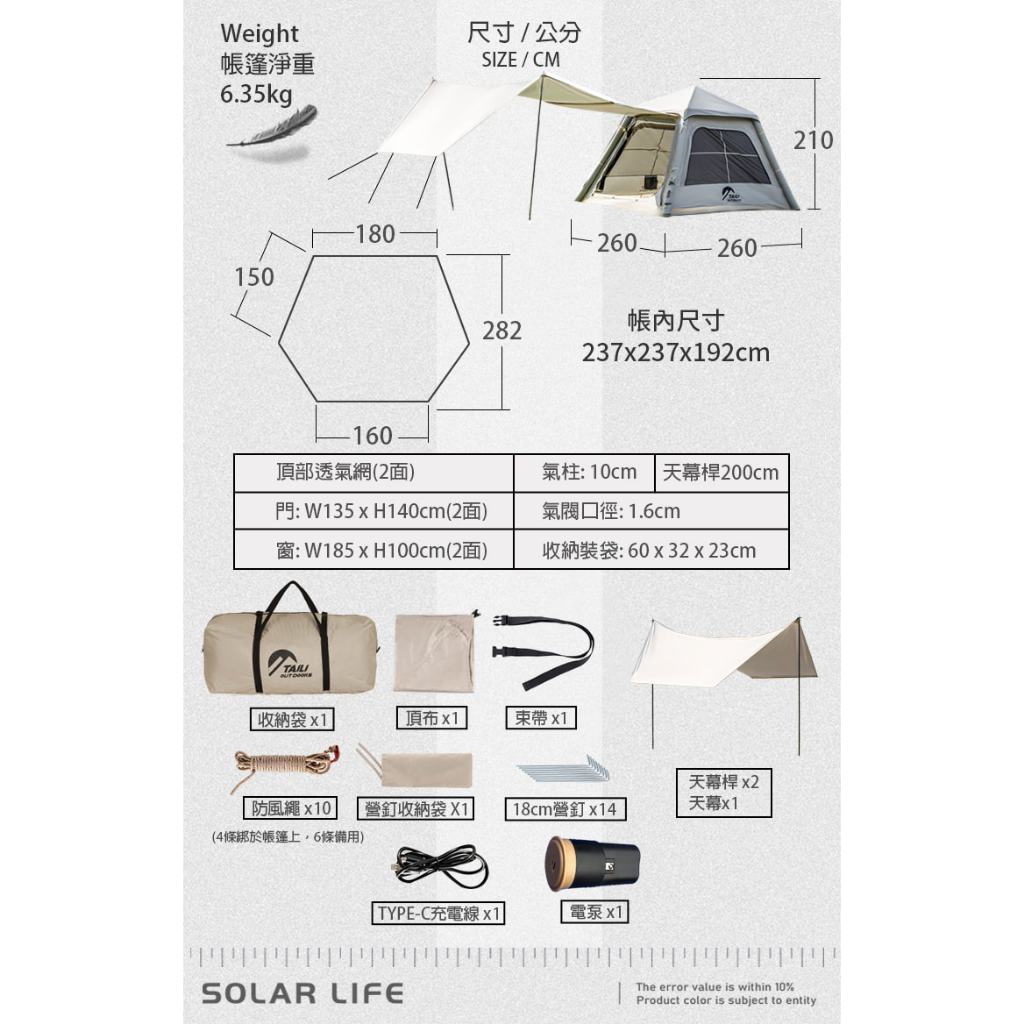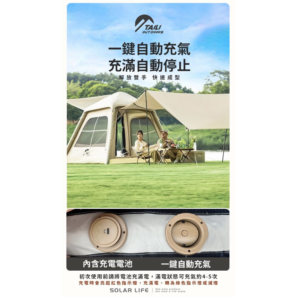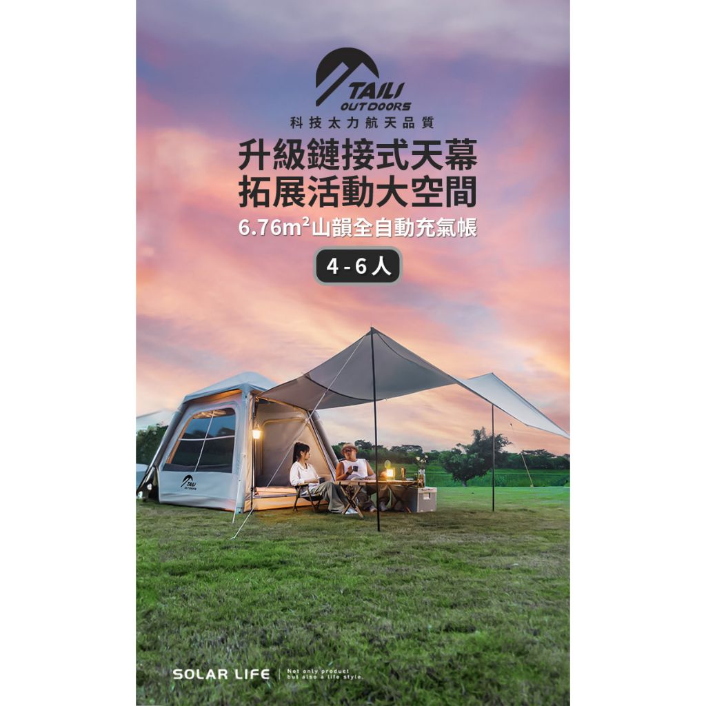 TAILI太力 6.76m²山韻全自動充氣帳 (4-6人帳) 氣柱帳 免搭建帳篷 3-4人帳 充氣速搭帳 野餐帳篷 免搭TAILI太力 6.76m²山韻全自動充氣帳 (4-6人帳) 氣柱帳 免搭建帳篷 3-4人帳 充氣速搭帳 野餐帳篷 免搭Camping & HikingSolar Life 索樂生活 | Keith鎧斯鈦台灣總代理
