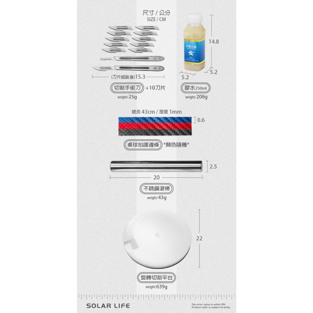 Solar Life 索樂生活 DIY自黏合桌球拍貼膠皮工具 桌球拍 乒乓球拍 膠皮更換 護邊膠帶 保養換皮護邊條/顏色隨機|不鏽鋼滾棒|切割手術刀|膠水+毛刷Table TennisSolar Life 索樂生活 | Keith鎧斯鈦台灣總代理