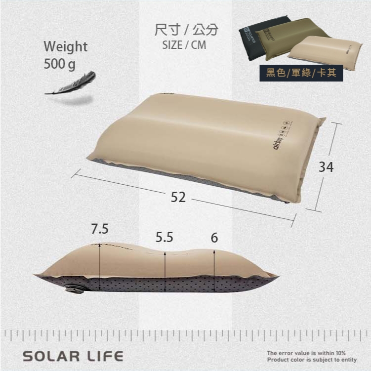 KZM KAZMI 輕柔舒眠自動充氣枕(附贈收納袋) 露營充氣枕頭 TPU睡枕 戶外枕 旅行枕靠枕 辦公室午睡枕卡其|黑色|軍綠Camping & HikingSolar Life 索樂生活 | Keith鎧斯鈦台灣總代理