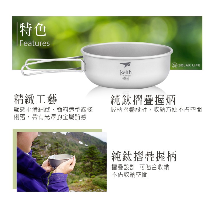 鎧斯Keith Ti5324 純鈦輕量環保折疊握把湯碗400ml 鈦碗 戶外露營餐具 野炊登山碗 可直火堆疊收 摺疊柄碗鎧斯Keith Ti5324 純鈦輕量環保折疊握把湯碗400ml 鈦碗 戶外露營餐具 野炊登山碗 可直火堆疊收 摺疊柄碗Camping & HikingSolar Life 索樂生活 | Keith鎧斯鈦台灣總代理