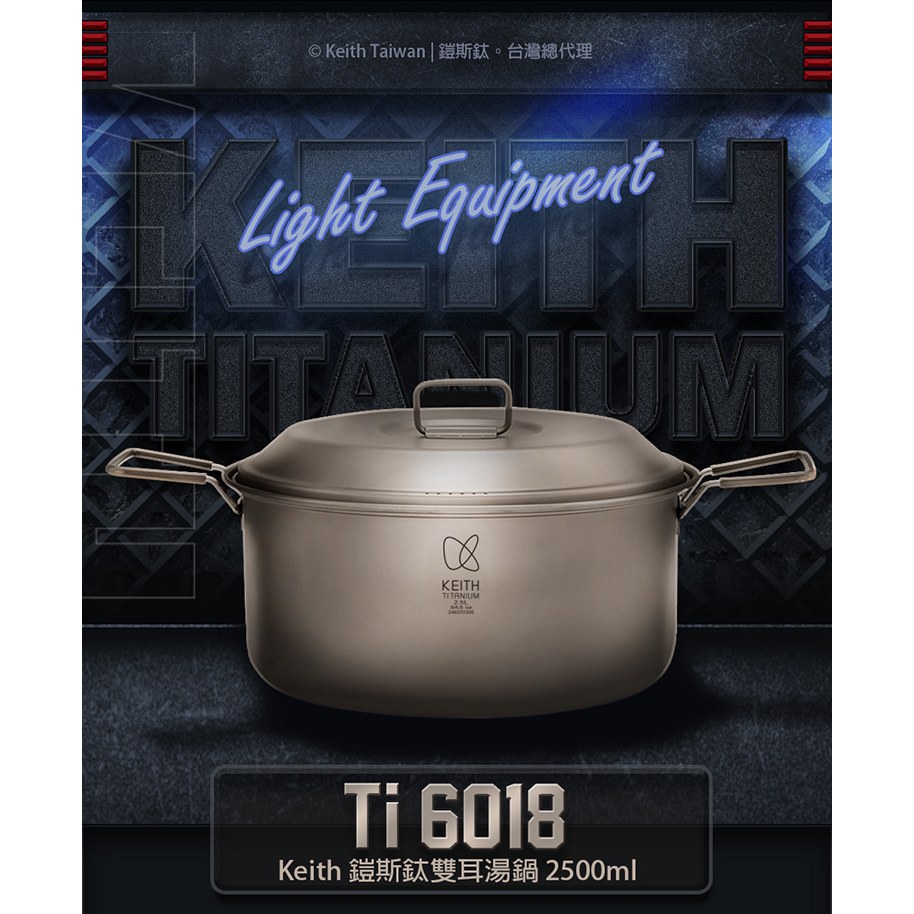 Keith 鎧斯鈦雙耳湯鍋 2.5L / Ti6018 鈦湯鍋鈦鍋 露營登山鍋 戶外野炊 輕量居家 摺疊握把 雙耳湯鍋
