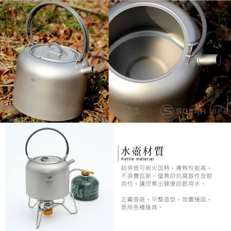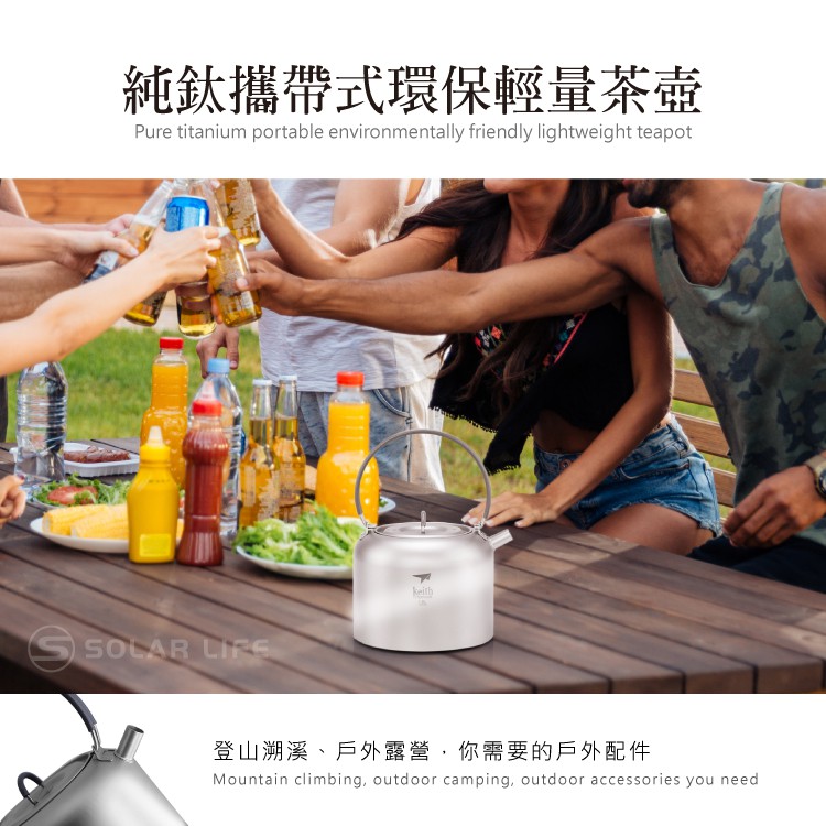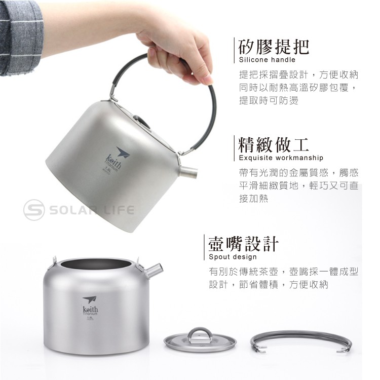鎧斯Keith Ti3907 純鈦攜帶式輕量茶壺1.5L 鈦茶壺純鈦壺居家戶外登山露營野餐鈦金屬折疊提把沖泡茶冷熱開水壺Ti3907Camping & HikingSolar Life 索樂生活 | Keith鎧斯鈦台灣總代理
