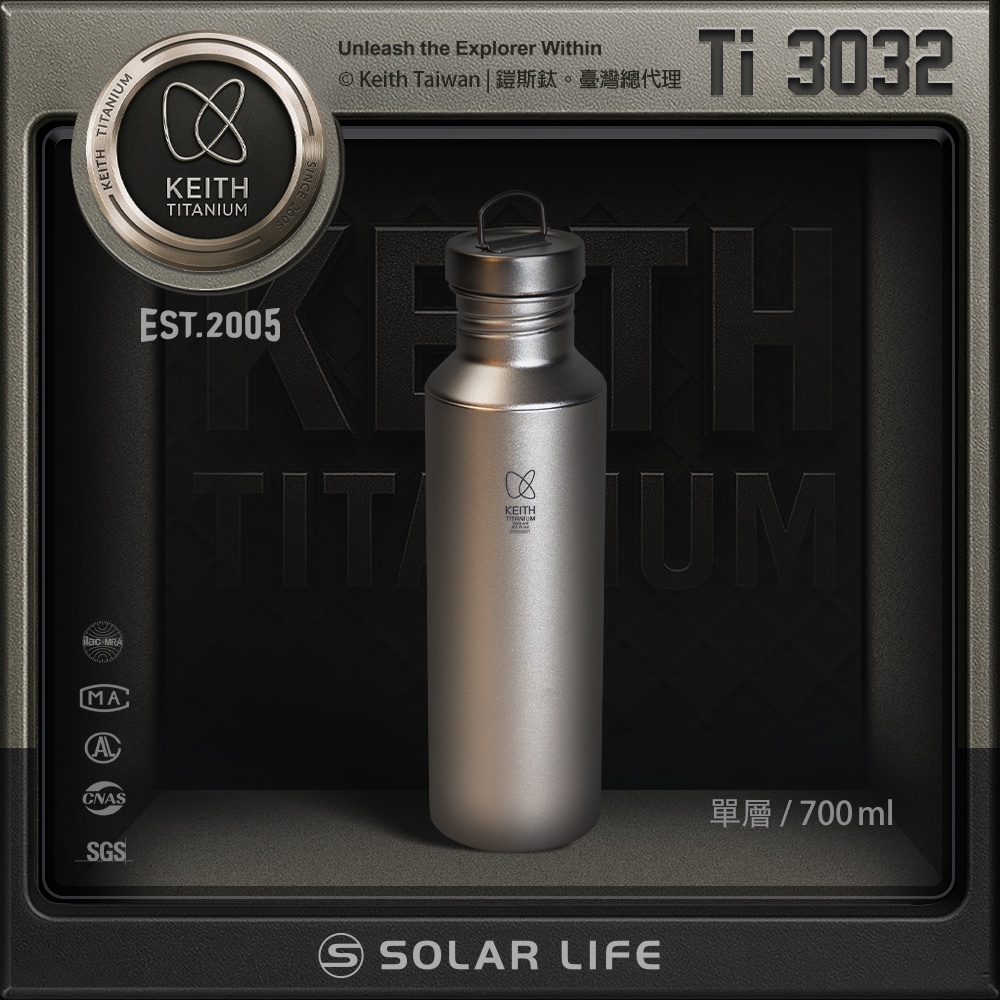 Keith 鎧斯純鈦運動水壺 Ti3032 附隔熱水壺套 700ml 鈦水壺 運動水壺 輕量露營水壺 登山 父親節禮物Ti3030 400ml|Ti3031 550ml|Ti3032 700mlFitness EquipmentSolar Life 索樂生活 | Keith鎧斯鈦台灣總代理
