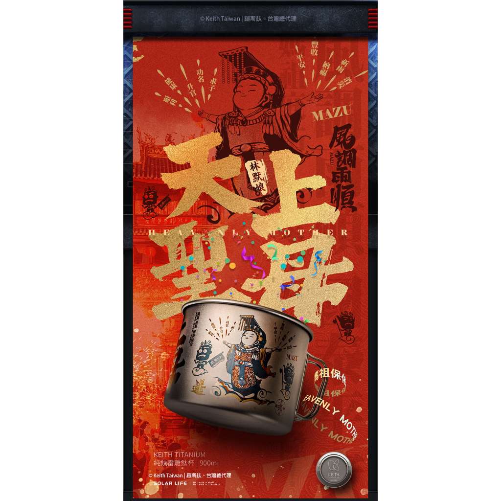 Keith 鎧斯鈦 天上聖母媽祖庇佑鈦杯 / 呷平安叉匙 / 萬事如意鈦筷 媽祖繞境 純鈦杯子 鈦金屬杯 登山鈦杯 露營