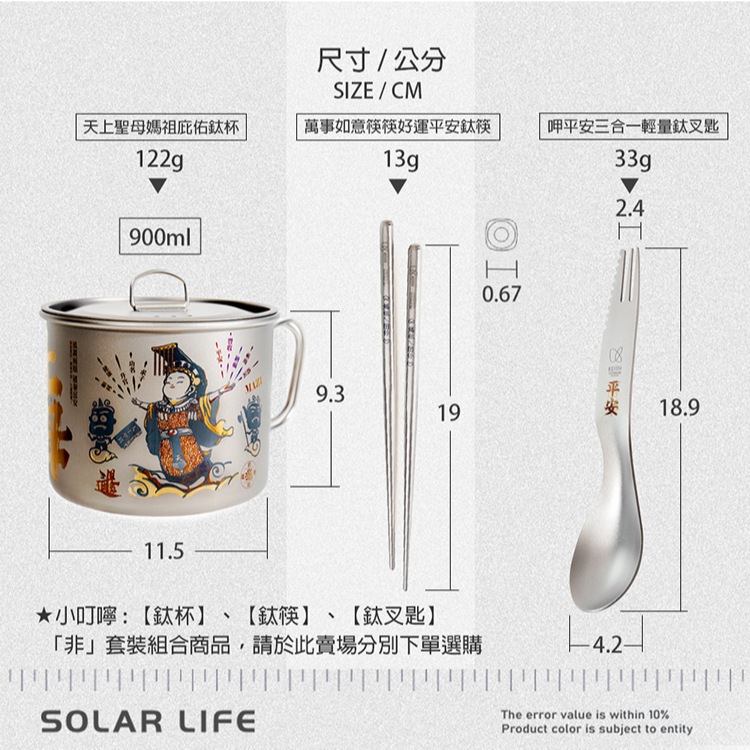 Keith 鎧斯鈦 天上聖母媽祖庇佑鈦杯 / 呷平安叉匙 / 萬事如意鈦筷 媽祖繞境 純鈦杯子 鈦金屬杯 登山鈦杯 露營媽祖庇佑鈦杯 900ml|呷平安叉匙|萬事如意鈦筷 19cmCamping & HikingSolar Life 索樂生活 | Keith鎧斯鈦台灣總代理