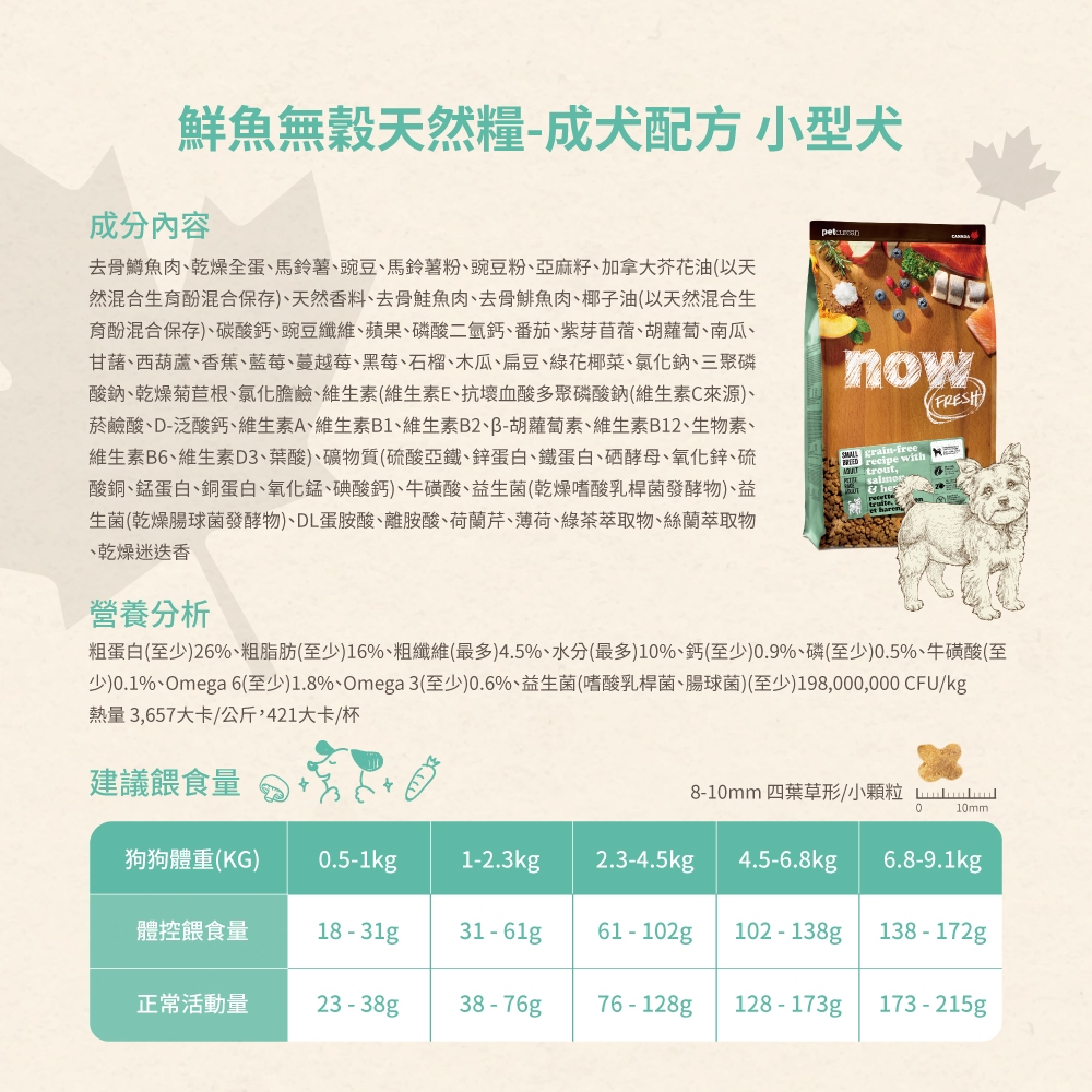• 【now】狗狗 鮮肉無穀天然糧 3.5磅/6磅/12磅/22磅-小型犬配方|小顆粒 狗飼料 狗糧 WDJ推薦