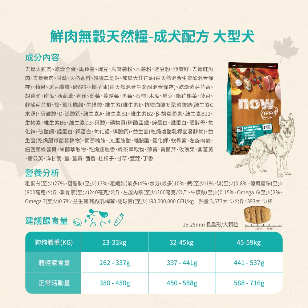 【now】狗狗 鮮肉無穀天然糧 12磅/25磅-大型犬 鮮肉配方|大顆粒 狗飼料 黃金 拉不拉多 哈士奇