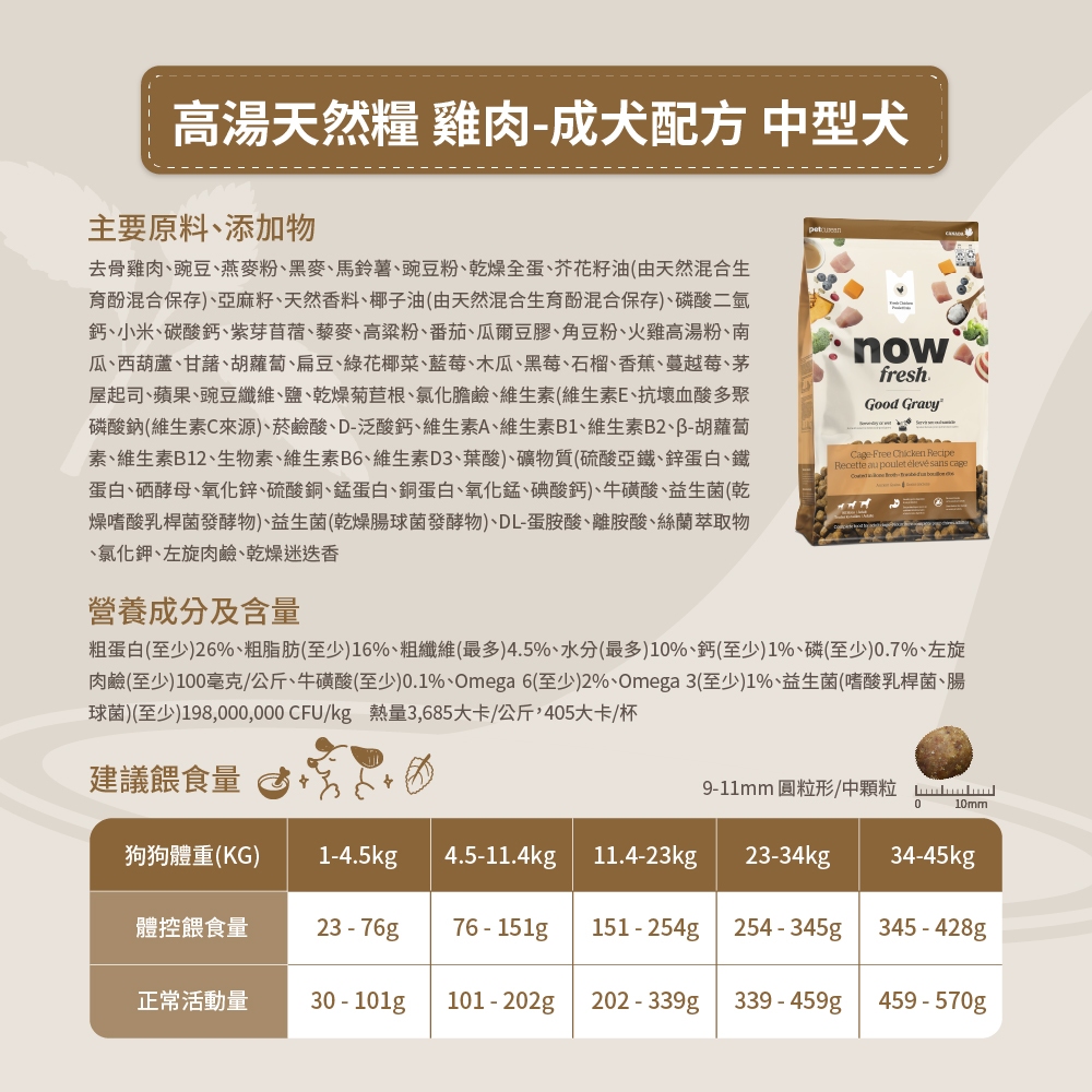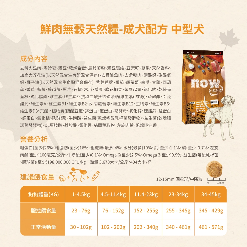 • 【now】狗狗 鮮肉無穀天然糧 3.5磅/6磅/12磅/22磅-中型犬配方|狗飼料 狗糧 幼犬 成犬 老犬