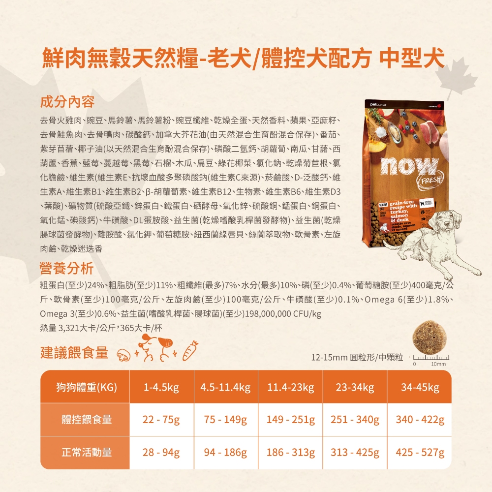 【now】狗狗 鮮肉無穀天然糧 3.5磅/6磅/12磅/22磅-中型犬配方|狗飼料 狗糧 幼犬 成犬 老犬