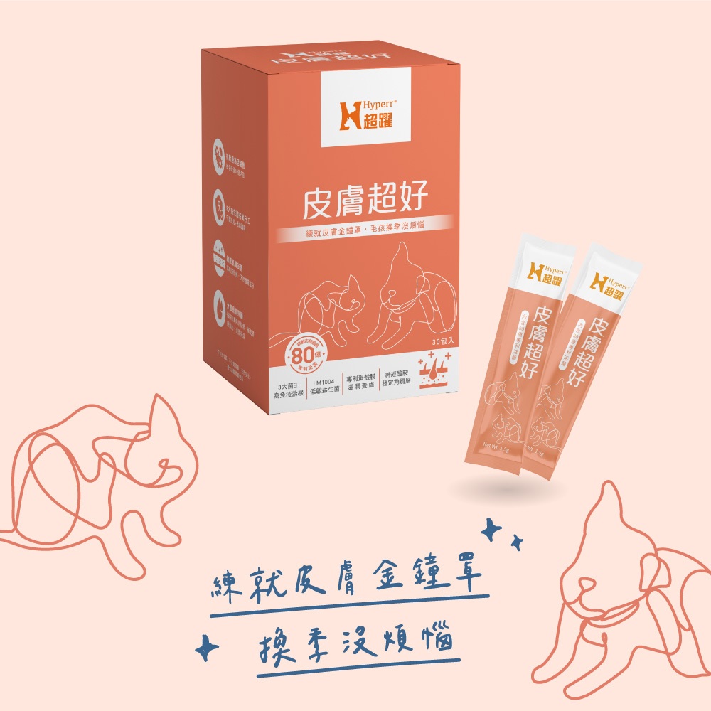 【Hyperr超躍】 狗貓皮膚益生菌 保健品 30入/盒|補充膠原蛋白 皮膚保健30包/1盒|30包/3盒|30包+12包Vitamins & SupplementsSofyDOG蘇菲狗 旗艦店