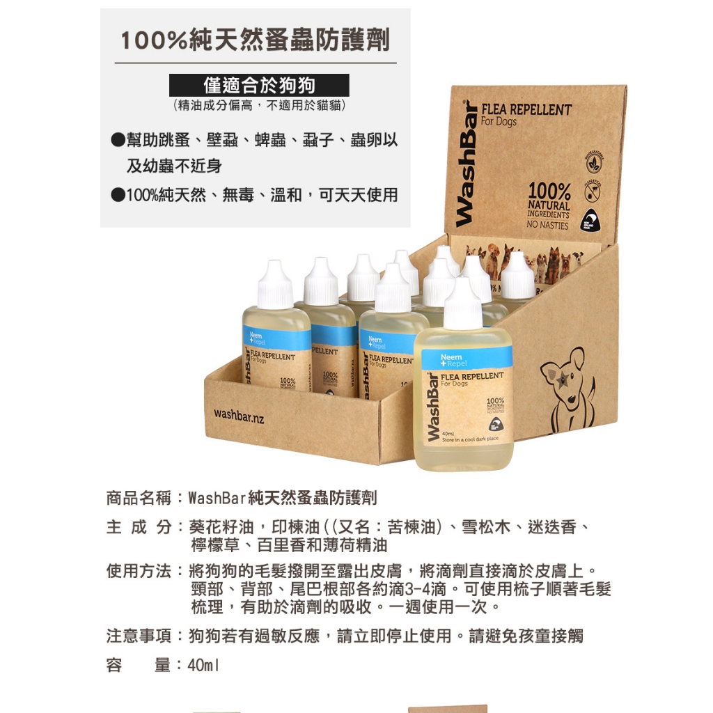 【WashBar】純天然蚤蟲防護劑 40ml|狗狗 寵物除蚤 防蟲【WashBar】純天然蚤蟲防護劑 40ml|狗狗 寵物除蚤 防蟲Hair CareSofyDOG蘇菲狗 旗艦店
