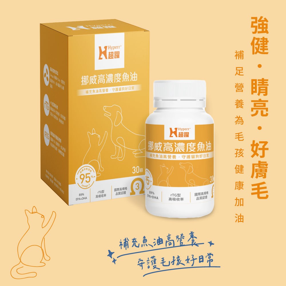 【Hyperr超躍】 頂極高濃度寵物魚油 30顆 95%Omega-3|狗貓適用 不添加雜油 專業獸醫推薦 狗貓保健品30顆/1罐|30顆+18顆|30顆/3罐Vitamins & SupplementsSofyDOG蘇菲狗 旗艦店