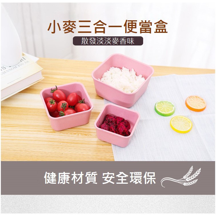 三合一飯盒 小麥秸稈 收納盒 飯盒粉|綠|藍Food StorageT.K.胎王商城旗艦店