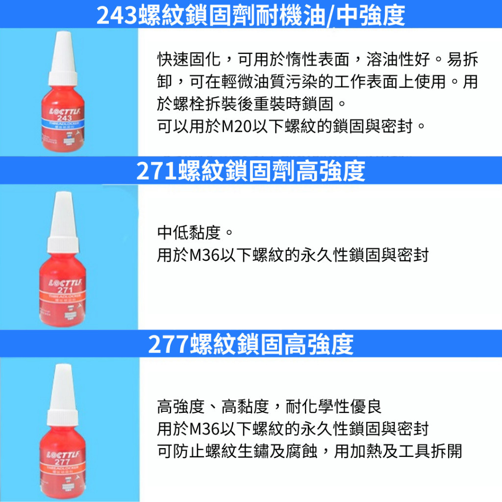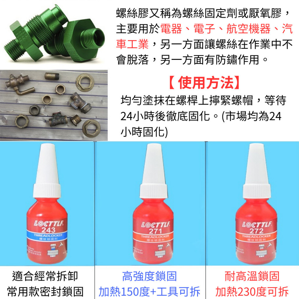 螺絲固定劑 螺絲膠 螺絲固定膠222 (10ml)|243 (10ml)|263 (10ml)|272 (10ml)|277 (10ml)|290 (10ml)Industrial Adhesives & TapesT.K.胎王商城旗艦店