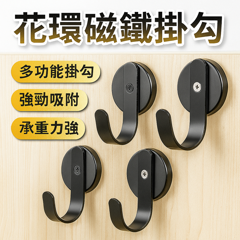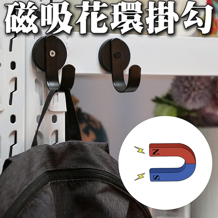 花環磁鐵掛勾 磁力掛勾黑色一個HooksT.K.胎王商城旗艦店